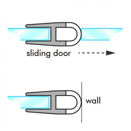 Dichtung für großen Spalt zwischen Glastür und Wandfliese bzw. zwischen Glastür und feststehender Glasscheibe vor allem bei Pendeltüren.