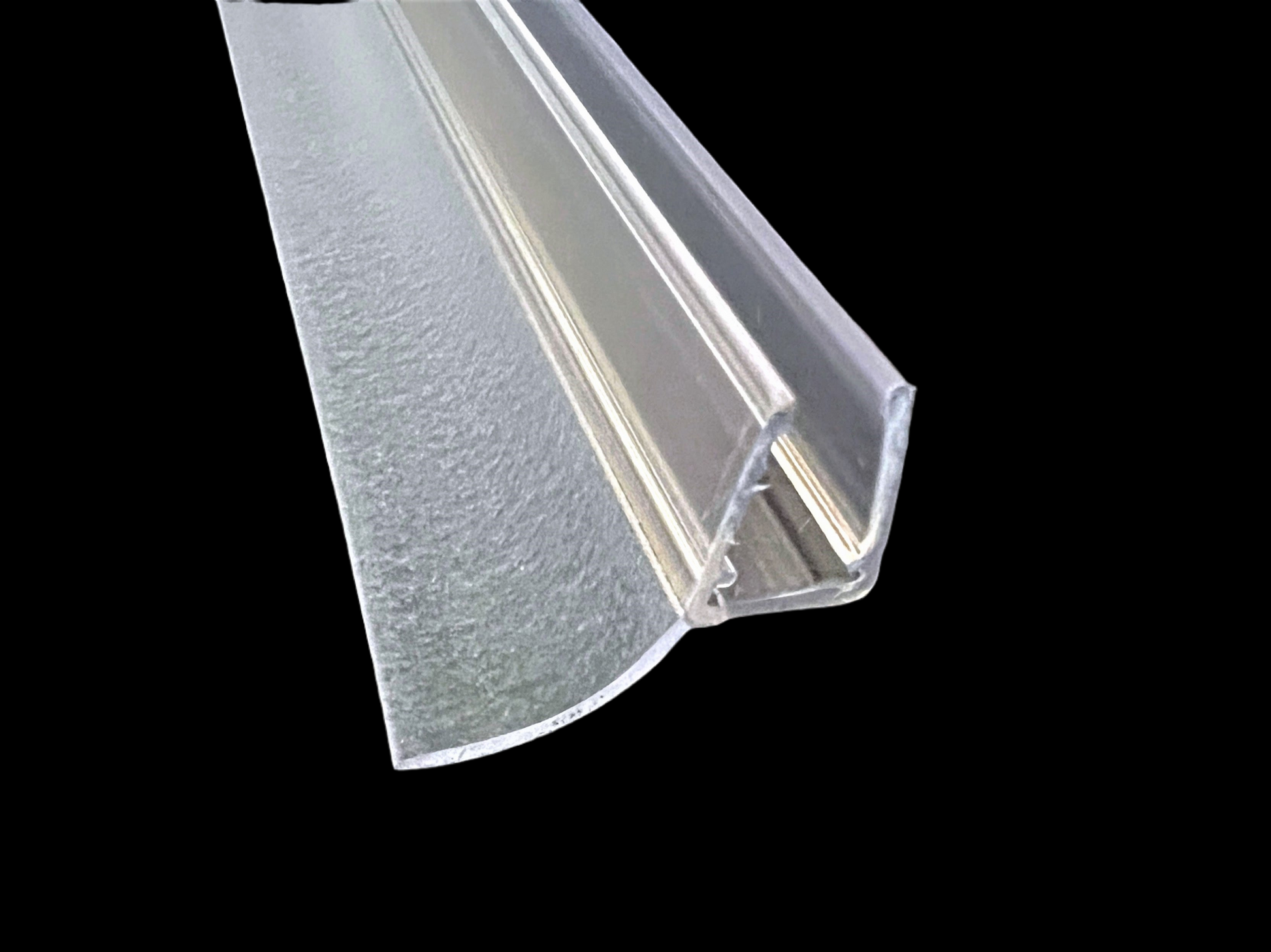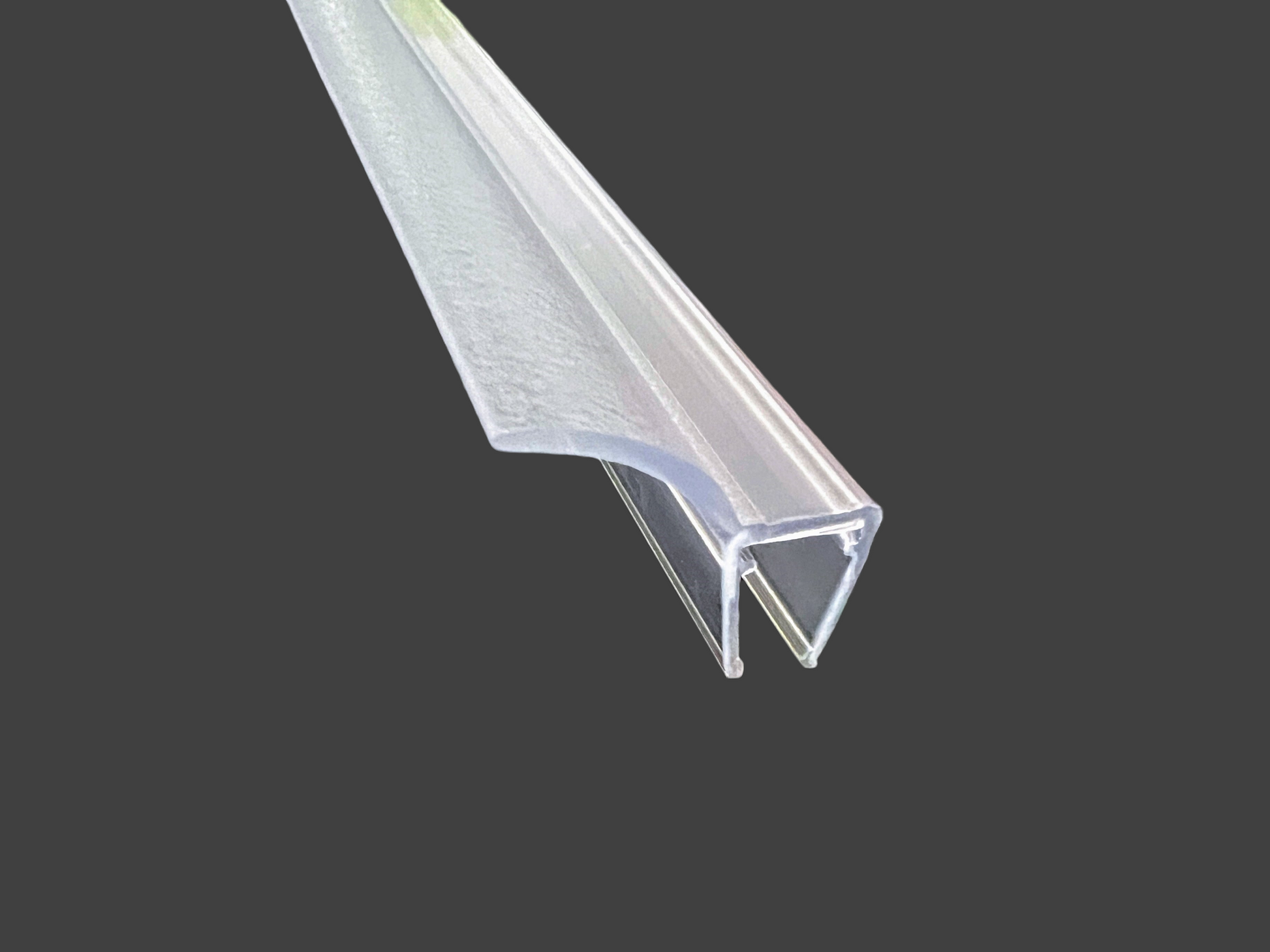 Dichtung mit langer schräg wegstehender Lippe für Glas-Wand Lücken bei Türen, die nur nach außen öffnen.
